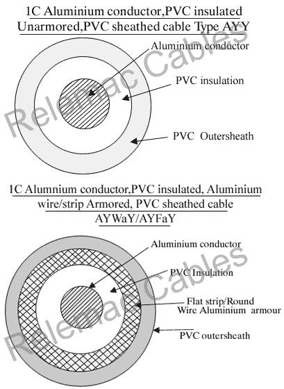 PVC Cables >> 650 1100V 3 Core Aluminium Conductor PVC Insulated and Sheathed Unarmoured AYY and Armoured AYFY AYW