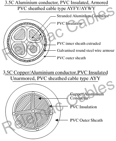 PVC Cables >> 650 1100V 3.5 Core Aluminium Conductor PVC Insulated and Sheathed Unarmoured AYY Armoured AYFY AYWY