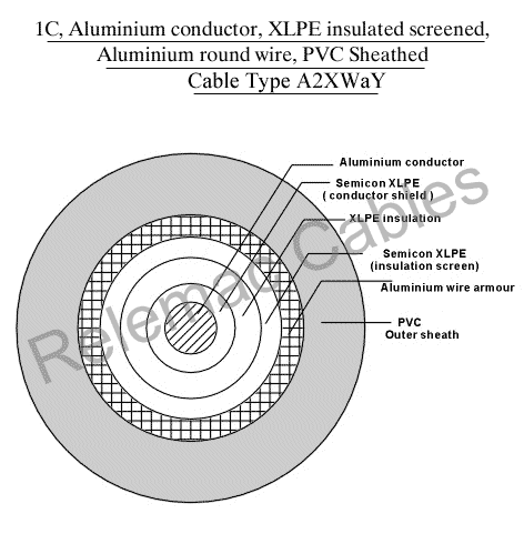 XLPE Cables >> Single Core Copper/Aluminium Conductor XLPE Insulated PVC Sheathed Cables Round Wire Armoured A2XWaY