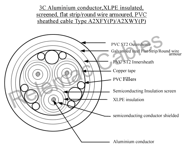 XLPE Cables >> Three Core Copper/Aluminium Conductor XLPE Insulated PVC Sheathed Cables Round Wire Armoured A2XWY P