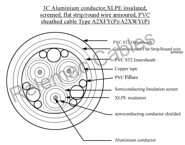 XLPE Cables >> Three Core Copper/Aluminium Conductor XLPE Insulated PVC Sheathed Cables Round Wire Armoured A2XWY P