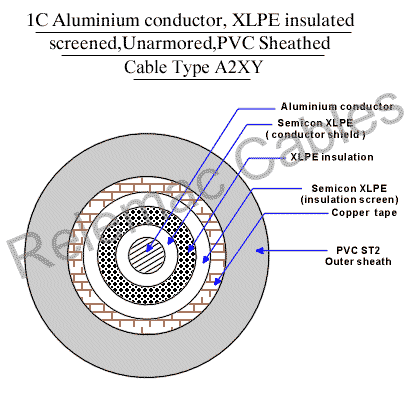 XLPE Cables >> Single Core Copper/Alumini m Conductor XLPE Insulated PVC Sheathed Cables Unarmoured A2XY